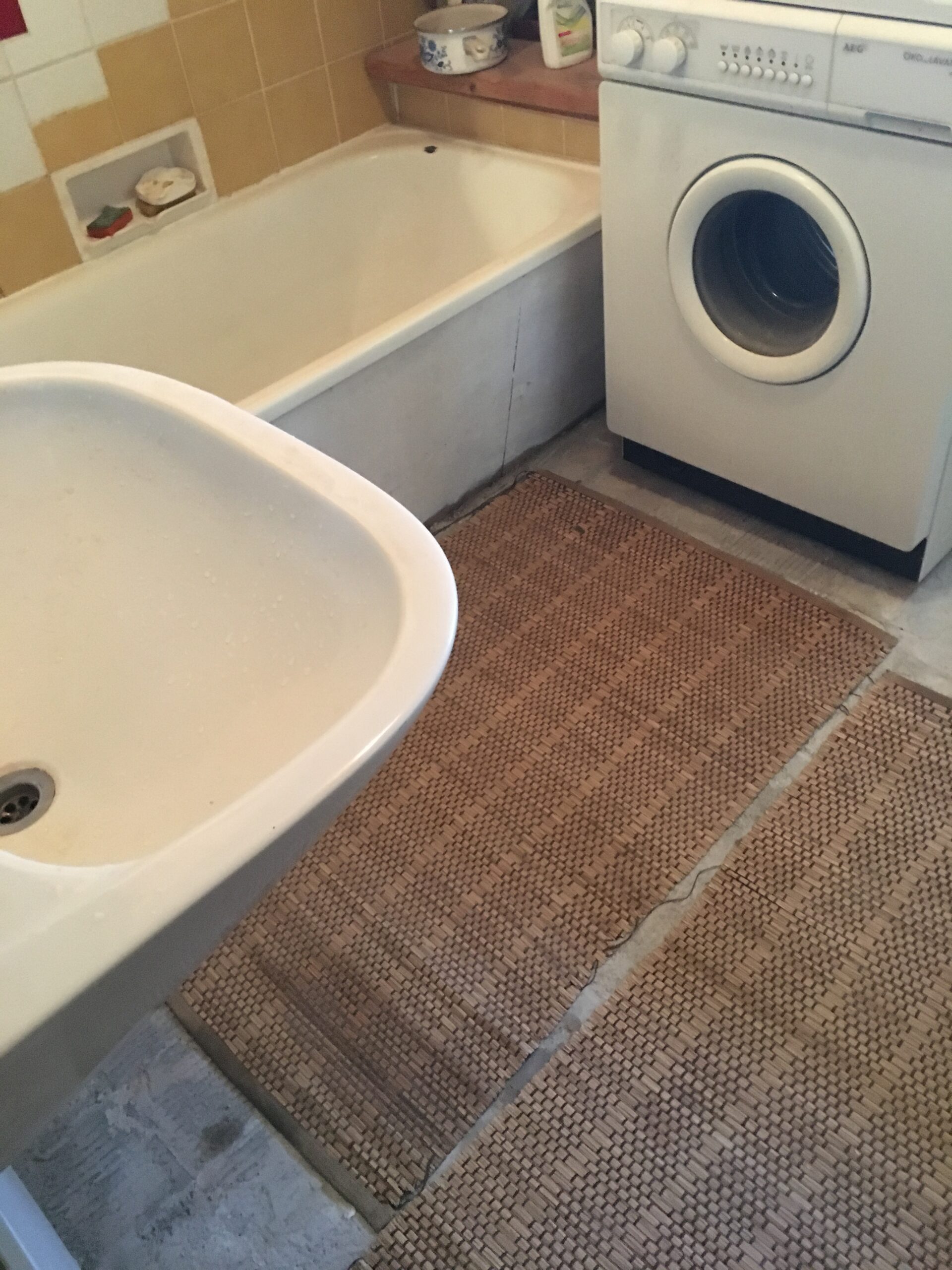 Wenns passt und die Zeit reicht, wird das Badezimmer nächste Woche mit einem neuen Boden ausgestattet.