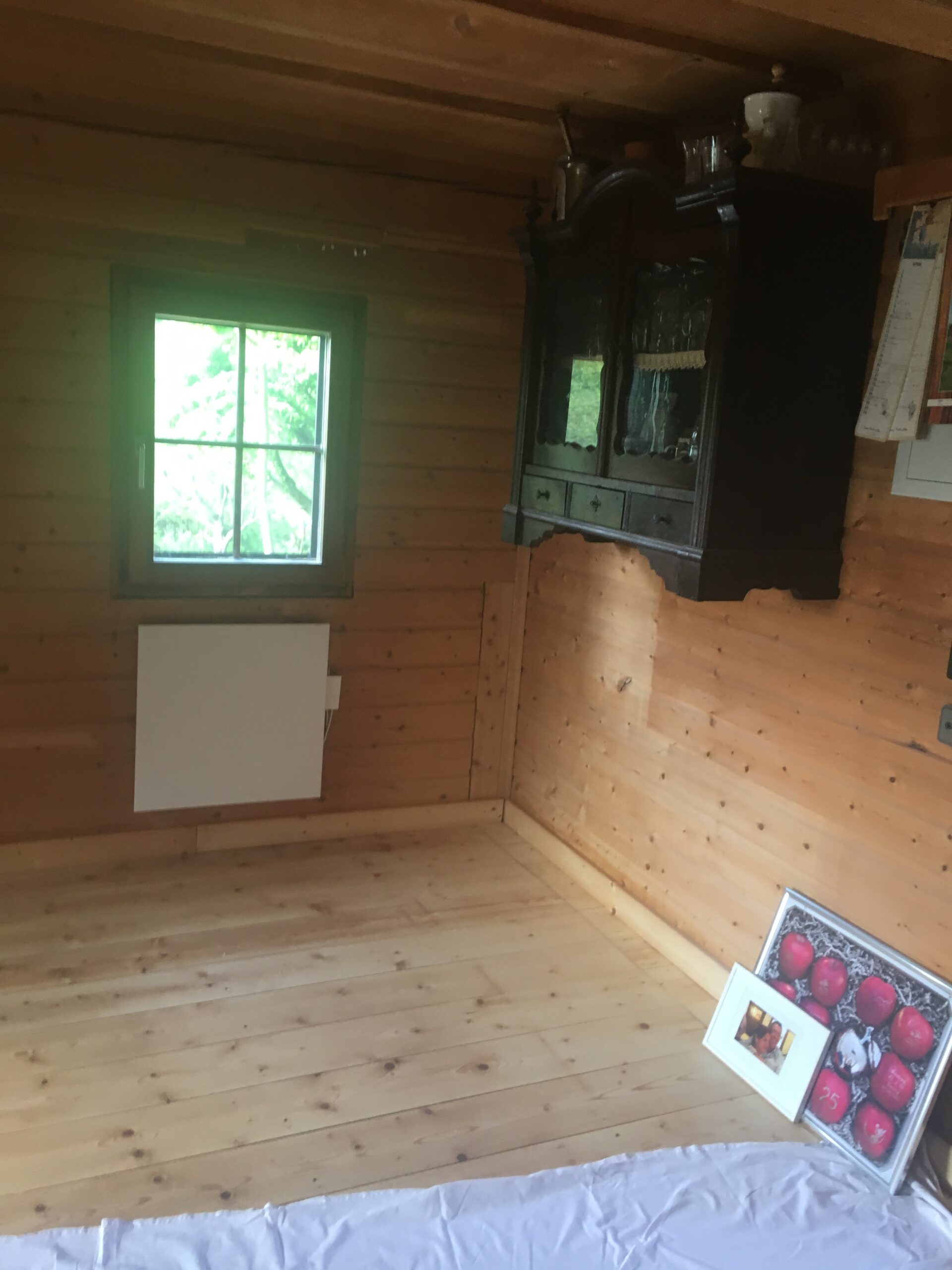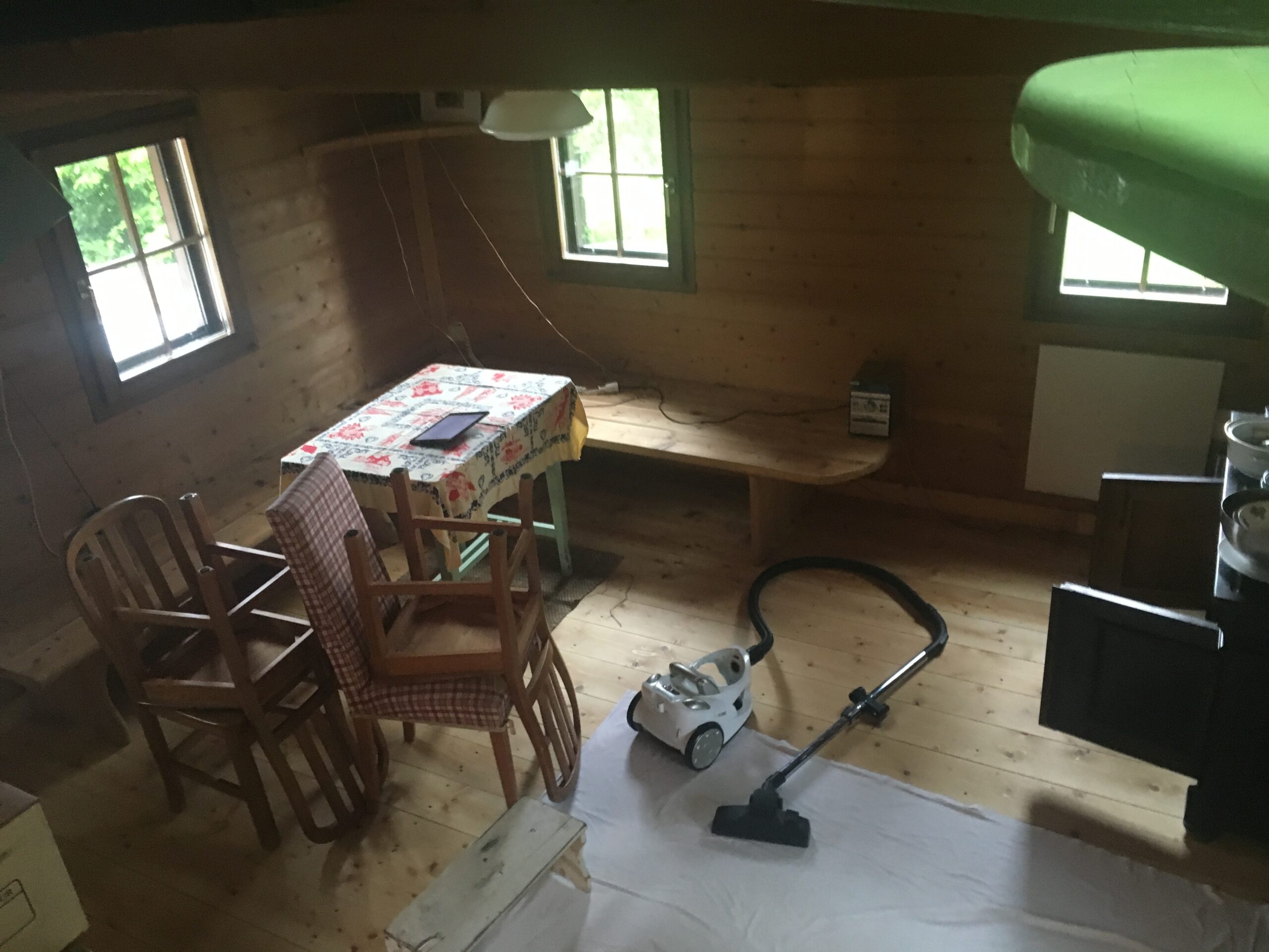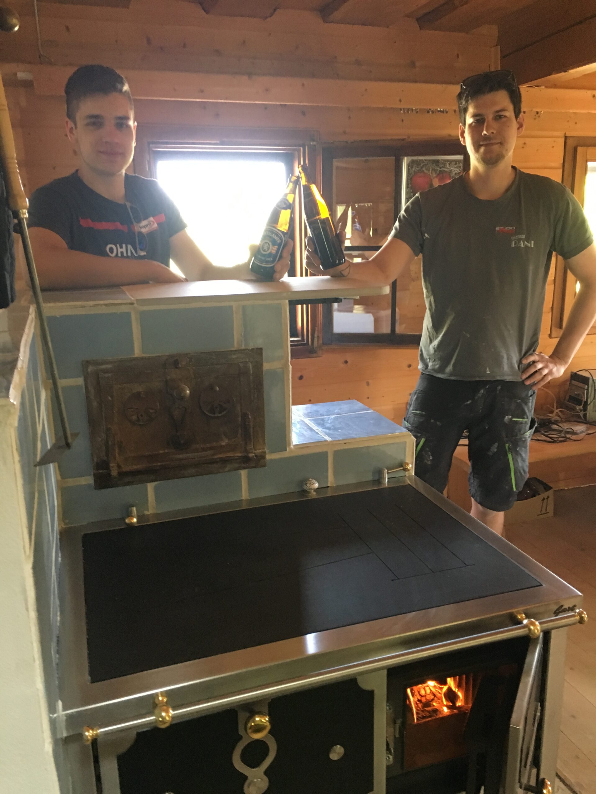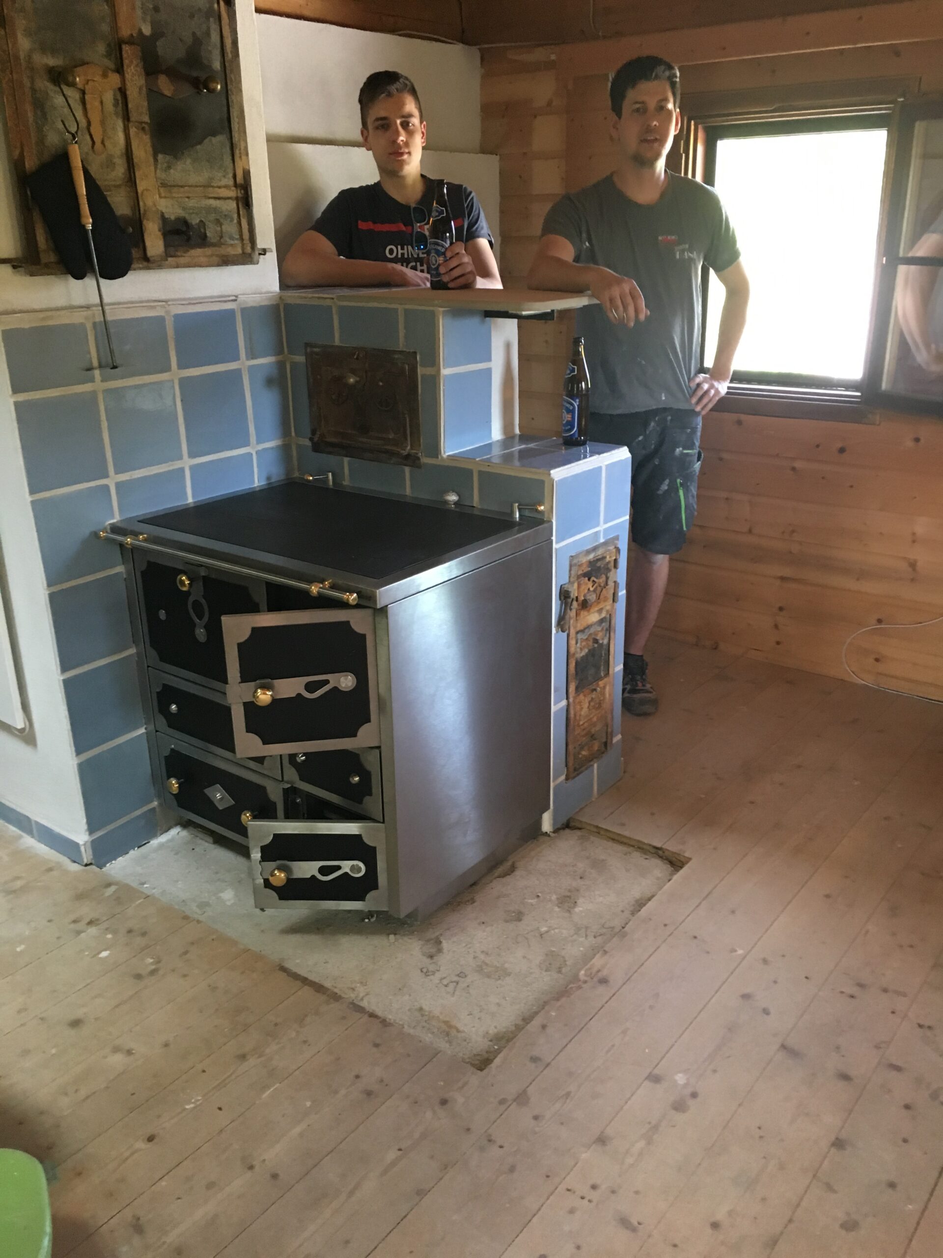 Der Herd ist schön geworden, jetzt wird der Boden geschliffen und geölt und im Badezimmer ein neuer Parkett verlegt.
